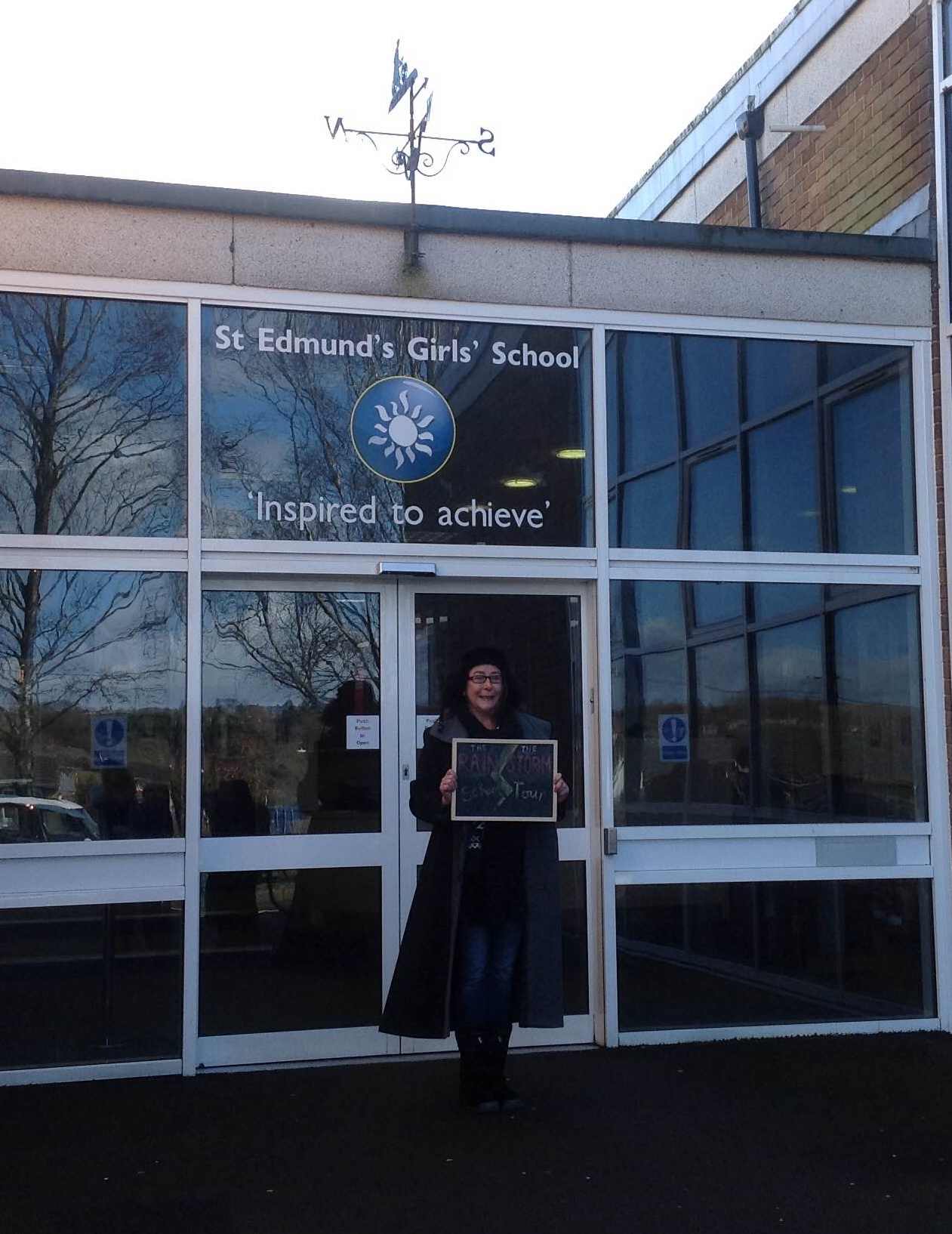 So, huge thanks to: King Edward VI Community College, Totnes, Devon (supported by the Totnes Bookshop); The Castle School, Thornbury, Bristol. (supported by The Chepstow Bookshop); Kingsdown School, Swindon, Wiltshire (supported by Browns Books for Students); Fitzharrys School, Abingdon, Oxfordshire (supported by Mostly Books); Heartlands High School, Wood Green, London and Fortismere School, Haringey, London (supported by the Big Green Bookshop); St. Edmund’s Girls’ School, Salisbury, Wiltshire (supported by Waterstones); Central Lancaster High School, Lancashire and Our Lady’s Catholic College, Morecambe, Lancashire (supported by SilverDell Books). (For links to schools and bookshops, see here.)